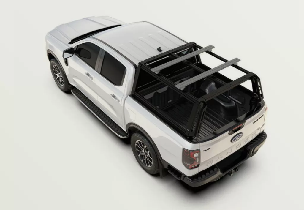 Upgrade the capability of your Ford Ranger T6.2 Wildtrak/Raptor Double Cab with the robust Pro Bed System. Engineered from lightweight steel and aluminum, this cargo system significantly enhances your vehicle's load-carrying potential. Whether you're heading out for an adventurous overland trip, a camping weekend, or need extra space for your sports gear, this system has you covered. Seamlessly secure it to your vehicle's load bed, and enjoy a versatile platform that accommodates various accessories like molle panels and recovery tracks.